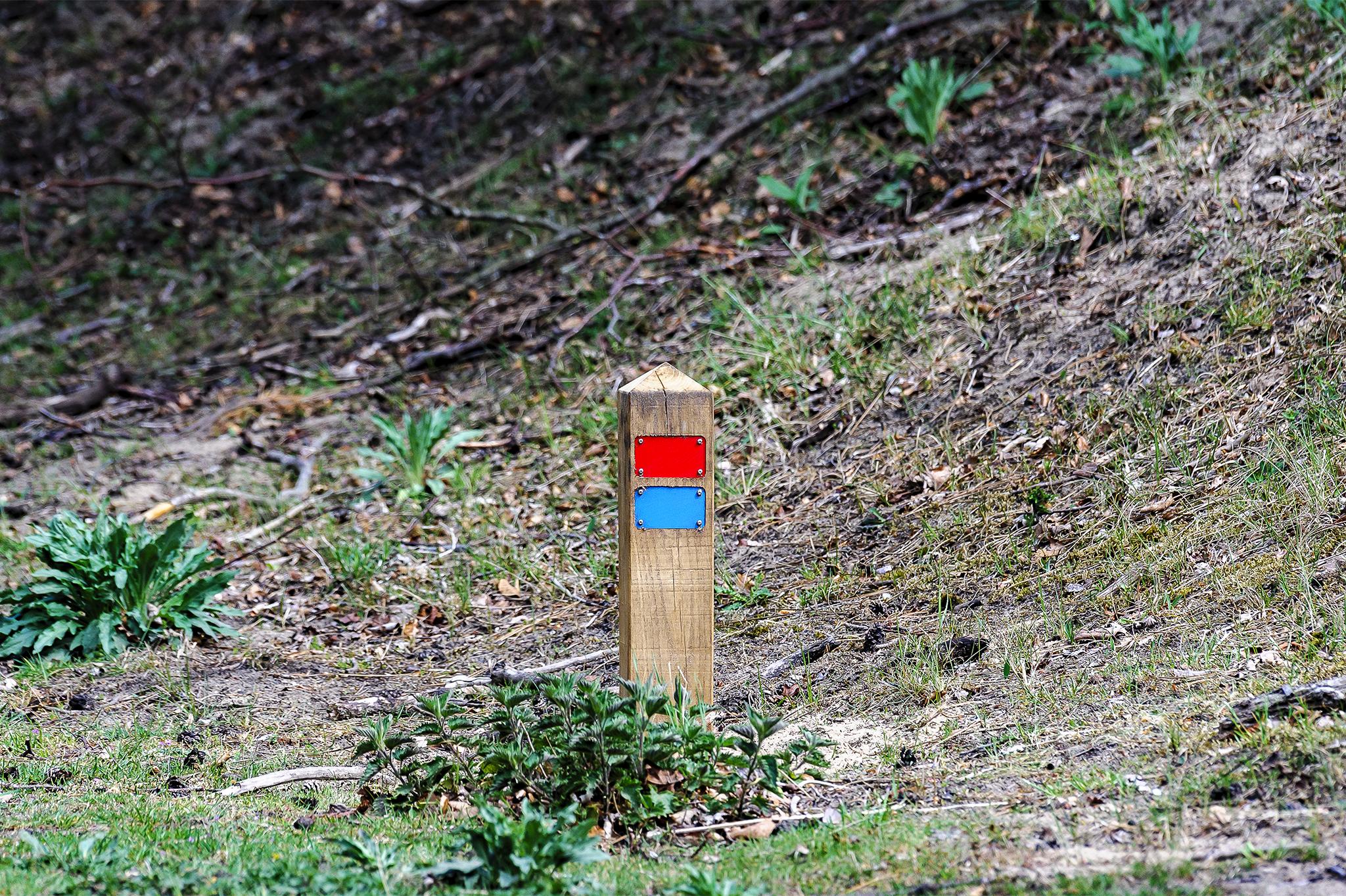 Volg de blauwe paaltjesroute vanaf ingang Panneland.